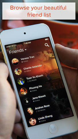 Приложение состоит из двух основных средств для управления вашими разговорами. Первым из них является список контактов в Facebook. Другой — список недавних тем. Список контактов позволяет использовать фото каждого друга не только в качестве аватара рядом с его именем, но и в качестве фона для каждой строки в списке, обеспечивая немного больше структуры, чем стандартный синий фон. Список чата обеспечивает быстрый взгляд на последние сообщения каждого потока.